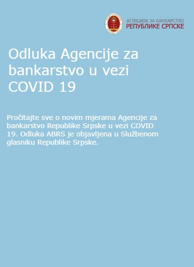 U cilju adekvatnog informisanja javnosti o mjerama koje je Agencija za bankarstvo Republike Srpske (u daljem tekstu: Agencija) donijela kroz podzakonske propise u cilju ublažavanja negativnih ekonomskih posljedica izazvanih pojavom virusnog oboljenja „COVID-19” (u daljem tekstu: korona virus), te očuvanja stabilnosti bankarskog sistema Republike Srpske, a kako bi otklonili nedoumice klijenata banaka i mikrokreditnih organizacija u vezi sa primjenom propisa u nastavku navodimo dodatna pojašnjenja odredaba usvojenih propisa. Odluku za mikrokreditne organizacije možete pogledati OVDJE.
